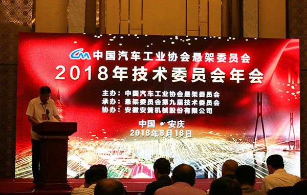2018年8月15-18日,全國上下喜迎改革開放40周年之際,中國汽車工業協會懸架委員會技術年會在安徽安慶南翔邦臣召開,黃樂明董事長代表東道主致歡迎辭,做了《堅定信心,創新驅動,內生動力促板簧行業再次騰飛》的主題演講,就當前宏觀經濟環境提出公司的研判,指出了“易變性、不確定性、復雜性、模糊性”的特征,并給出了安簧方案。