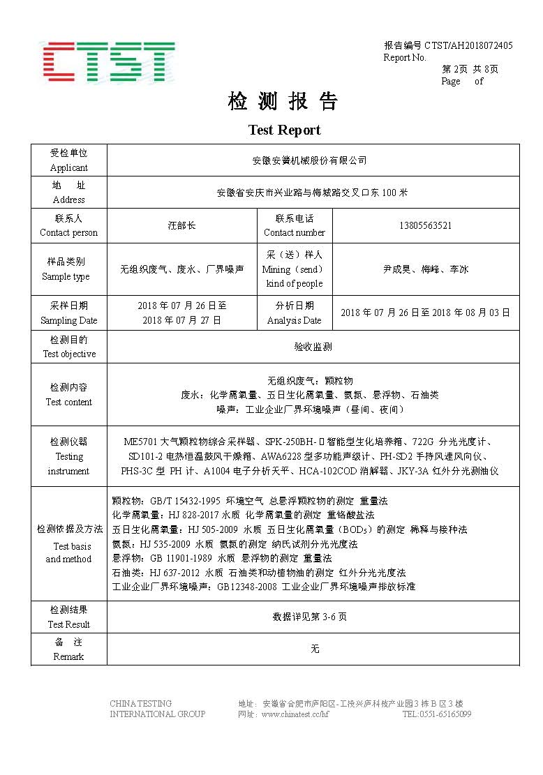 環保檢測報告公示及環評意見