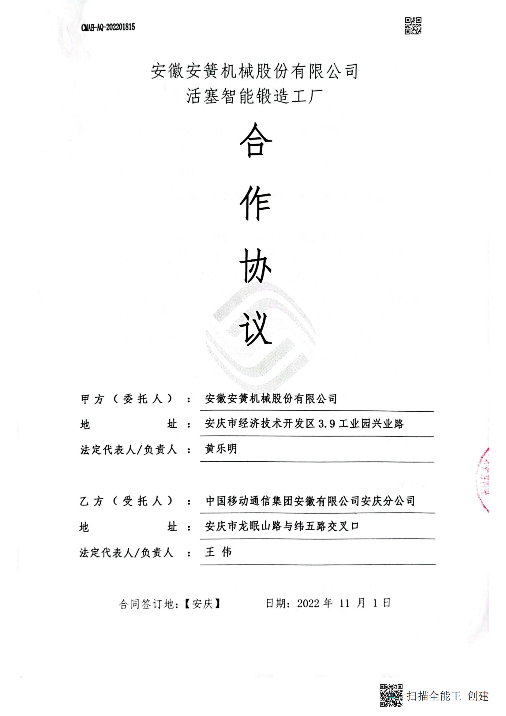 安簧機械股份有限公司與中國移動公司簽訂5G智能工廠協(xié)議